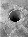 | Description: | Much of wall and part of bottom missing. Flat bottom outlined by groove; two grooves at plain lip; band handle attached just below lip. Worn black to brown glaze. | |