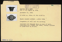 | Description: | Fragments of wall and rim missing. Reserved and incised line at base of wall, otherwise as P 25528 (ΠΘ 3592), except circles on underside in dilute. | |