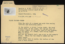 | References: | Publication: Agora XXIII Publication: Hesperia 15 (1946) Publication Page: Agora 23, s. 217, p. 201 Publication Page: Agora 23, s. 355, p. 339 Image: 2012.51.1086 (XXVI-21) Deposit: G 6:3 Deposit: G 6:3.1 Notebook: Α-8 Notebook Page: Α-8-46 (pp. 1441-1442) Card: P 2563 |