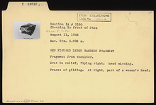 | Description: | Fragment from shoulder. Eros in relief, flying right; head missing. Traces of gilding. At right, part of a woman's head. | |