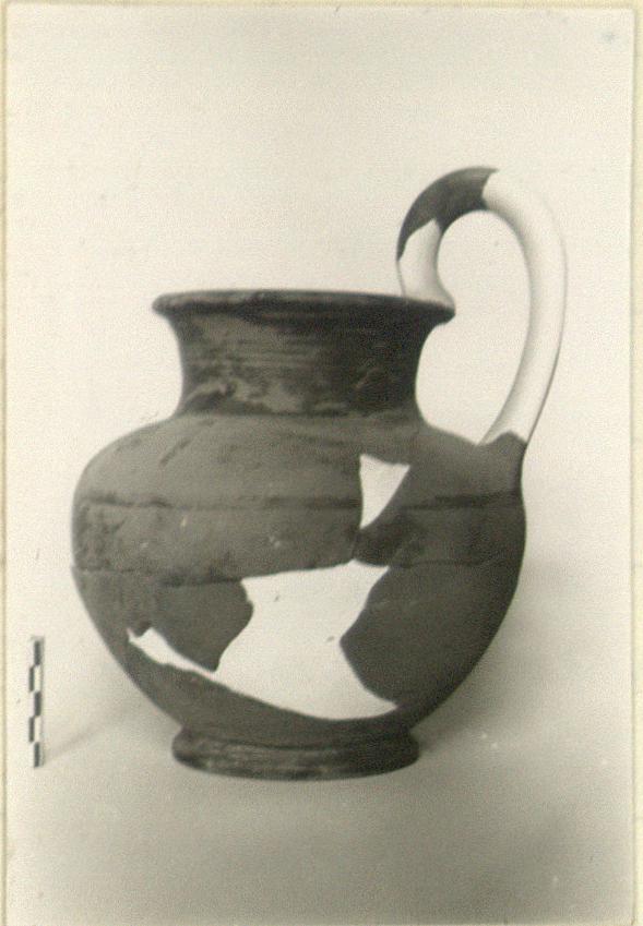 | Description: | Round-mouthed, semi-glazed. Glazed red, dilute wash on body much worn. Cf. Agora XII, no. 150. | |