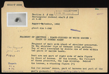 | References: | Publication: Agora XXIII Publication: Hesperia 15 (1946) Publication Page: Agora 23, s. 265, p. 249 Publication Page: Agora 23, s. 355, p. 339 Image: 2012.51.1065 (XXV-100) Deposit: G 6:3 Deposit: G 6:3.1 Notebook: Α-8 Notebook Page: Α-8-52 (pp. 1453-1454) Card: P 2592 |