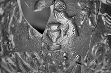 | Description: | Mended from many fragments; small parts of rim and walls missing. Medallion: small-leaved rosette within scraped groove; around it, palmettes with broad-petalled leaves above. Figured wall decoration: on either side, Dionysiac group (Dionysos, Satyr and woman); between them, Erotes, Pegasi and goats at kraters. Rim pattern: reversed spirals with leaves above, surmounted by a broad plain band. Glaze metallic, fairly firm. | |