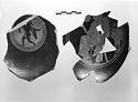 Description:   Mended from many pieces. The base complete, the rim preserved in five places; handles missing.