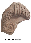 Description:   a) Lug only remains. Wreathed Satyr's head on inner face of lug. Dentils below rim on outside; ovolo on top of rim.