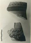 | Description: | a) Flaring neck thickend outside, with step-maeander. Glaze, then bands. On neck, tops of maeander, incised. Red glaze. b) Three joining fragments. Step-maeander between bands. | |
