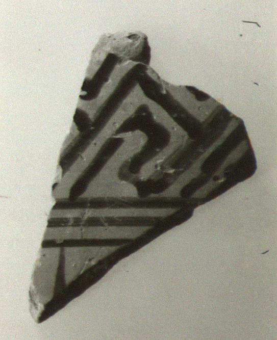 | Description: | Oblique maeander, tip of ray. Brownish-black glaze. | |