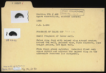 Description:   [Once thought to be calyx cup fragment.] Small fragment of lower wall. False ring foot with raised ring around center. Around the wall, painted vine, with clusters, once bright yellow, now much worn.