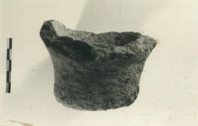 | Description: | Peg toe, deeply hollow inside; roughly made; bottom not a circle. Coarse clay, pitted, full of bits; brown with core partly gray. Cf. toe of Vouni no. 266, SwCyprusExp III, p. 237, no. 266, fig. LXIII, 10. | |