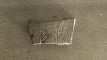 | Description: | Coarse sherd of unglazed buff clay. Probably part of an ostrakon. Suggested restoration: <graphic> | |