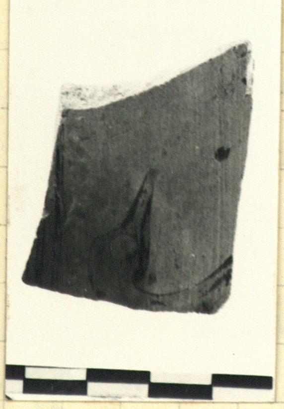 | Description: | From wall of a closed pot. Head of long-necked bird, right. No incision. Greenish-buff clay. Glaze used for drawing, flaked off badly. | |