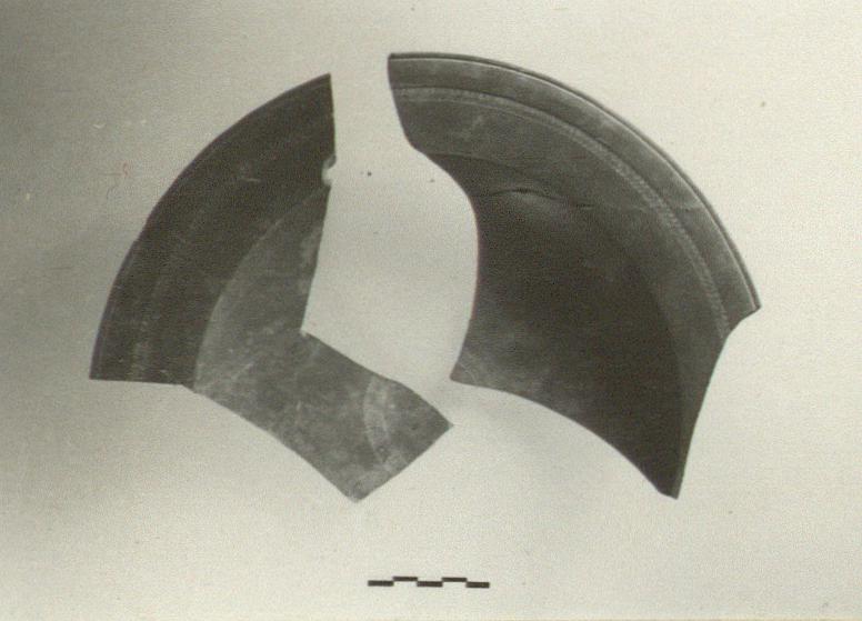 | Description: | Numerous pieces mend up into two fragments. About half missing. Broad flat rim; slightly offset base. Band of rouletting on rim and on floor. Red clay; firm glaze, mottled in spots. Late Roman A, African red slip ware. Cf. P 3001 (Ι 687) for fragments found earlier and joining. | |