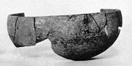 Description:   Numerous joining fragments preserve most of rim and much of wall. Simple rounded bowl with plain rim. Unglazed and burnt gray.