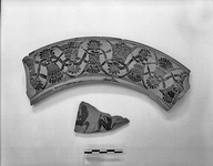 | Description: | Nine fragments mend to five. Fragments a-c) from rim; d-e) from floor. Fine lotus and palmette frieze on rim. Traces of scene on floor: ithyphallic satyrs (fragment d which was found in layer 6 but evidently belongs to floor of this plate). Fragment e) would seem to indicate the presence of an exergue. Red on hearts of palmettes and lotuses, and on calices of lotuses. Underside glazed except on resting surface. ADDENDA P 26639 d and e are from another plate, same shape and same painter (D. Callipolitis 1962). | |