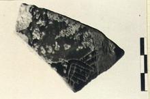 | Description: | From wall of a large amphora. Hand holding reins(?), seen against neck of horse(?). To left, part of striped garment. Red for neck of horse. | |
