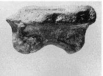 | Description: | Horizontal lug handle from coarse pithos, with semicircular indentation in center. Coarse gritty micaceous pinkish-buff clay. | |