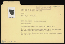 | Description: | Rim fragment. Thin-walled bowl with slightly flaring rim. Gritty buff clay, brown burnished slip on interior and exterior, slightly red on interior. | |