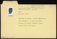 | Description: | Wall fragment; no edge preserved. Pattern of opposed diagonal ridges. Coarse gritty buff clay. | |