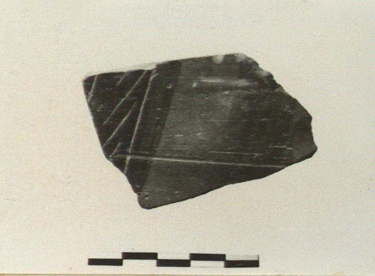 | Description: | Small fragment of wall preserving part of a vertical black-figure motif. Clay brownish, streaky sepia glaze. | |