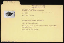 Description:   Part of neck and wall. Below red band (pattern?) head to right with Phrygian cap.