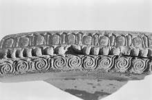 Description:   Fragment from rim. Decorated with spirals, egg and dart and bead and reel.