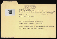 | Description: | Three joining fragments from wall. Torso, arms and legs of nude woman holding amphora. ADDENDA (Sept. 2020), according to Agora XXX, Bell or Calyx Krater fragment. | |