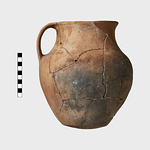 | Description: | Numerous joining fragments. Missing rim and wall fragments now restored in plaster. Plain base, wide oval body, broad band handle attached to flaring rim. Burned mostly on wall opposite handle. Coarse fabric. Cf. Hesperia 68 (1999), p. 262, n. 10. | |