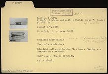 | Description: | Part of rim missing. Straight wall, projecting flat base, flaring rim stepped on exterior. Buff clay. Unglazed, traces of white. Cf. P 28038. ADDENDA Base for TC figurine or plastic lekythos (DBT). | |