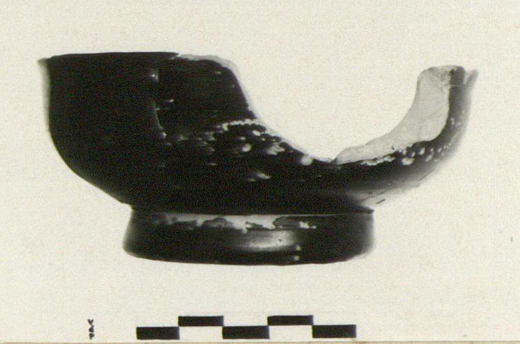 | Description: | Mended from seven pieces, partly restored in plaster. Ring foot, angled wall, rim flat and inturned. Glazed inside and out. Orange clay, peeling black glaze. Cf. Hesperia Suppl. 25 (1992), p. 7, n. 24. | |