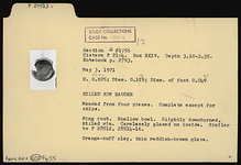 | Description: | Mended from four pieces; complete except for chips. Ring foot; shallow bowl; slightly downturned, rilled rim. Similar to P 28512, 28514-28516. Orange-buff clay. Carelessly glazed on inside: thin reddish-brown glaze. | |