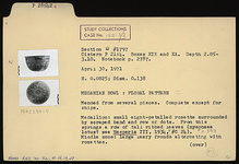 Medallion: small eight-petalled rosette surrounded by scraped band and row of dots; from this springs a row of tall ribbed leaves (nymphaea lotus? see Hesperia 3, 1934, p. 357, no. C 24).