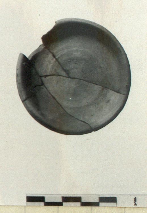 | Description: | Mended from five pieces. Missing piece from rim. Some fragments discolored by fire. Roughly wheelmade unglazed saucer with flat base. Pinkish-buff clay. | |
