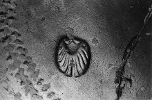 | Description: | Mended from two pieces; over three-fourths complete; chips missing. High ring foot, bottom rises to nipple; curved, flaring side wall, everted rim. Four palmettes and poor rouletting on floor. Stacking circle on floor. Pale orange clay. Shiny brown to red glaze, chipped off in places. | |