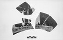 | Description: | All fragments are broken all around. a) Mended from two pieces. Preserves head of deer with one conical horn, tail of deer, phiale, and staff of figure to left. b) Mended from three pieces. Preserves feet of figure to left, showing chiton falling down to feet, and four legs of spotted deer, toe of figure to left. c) Mended from two pieces. Preserves part of figure to left. Unglazed inside. Scene shows a figure at left with phiale, deer in center draped figure with staff at right. Ground line is ovoles. Black glaze. Orange clay. Additional single fragment with part of a fawn joins P 30126 a. | |