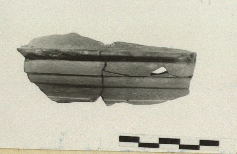 | Description: | Fragment of kernos: part of a carinated body pierced by a hole. Decorative grooves on body. Reddish clay. | |