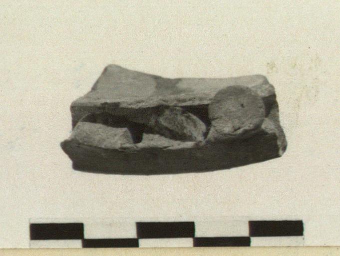 | Description: | Preserved is part of the body and one complete kotyliskos. Two other kotyliskoi are missing. Reddish clay. | |