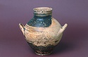 | Description: | Rim chipped, glaze badly flaked. Flat bottom, torus base. Ovoid body with greatest diameter above middle height. Short, almost vertical neck. Handles at belly, at ca. 45° angle. Glazed all over except handles and reserved band at belly. Glaze dripped inside mouth. Stripe of glaze on handles and on outside of handle attachments. Decorated panel; from top: row of dots, 4 bands, row of dots, concentric semicircles (not compass drawn) alternately hanging and resting on ground line; 3 bands. Submycenaean. Brown glaze. Yellow-gray clay. | |