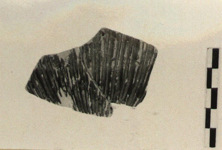 | Description: | Two fragments of wall, broken all around. Fragment of long petal bowl with convex petals. Black glaze, peeling. Attic clay. | |