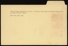 | Description: | Two non-joining fragments broken all around. a) Upper register: at left a frontal figure wearing chitoniskos armed with spear moves right. Rim, egg and dart. b) Calyx acanthus leaf with tip bent forward probably alternating with lotus petal. Wall divided into registers by ridges. Lower register: indistinct figure (animal?) at left. In center, lower body of person moving left, at right another figure. Hard thin gray clay. Black glaze. Import. | |