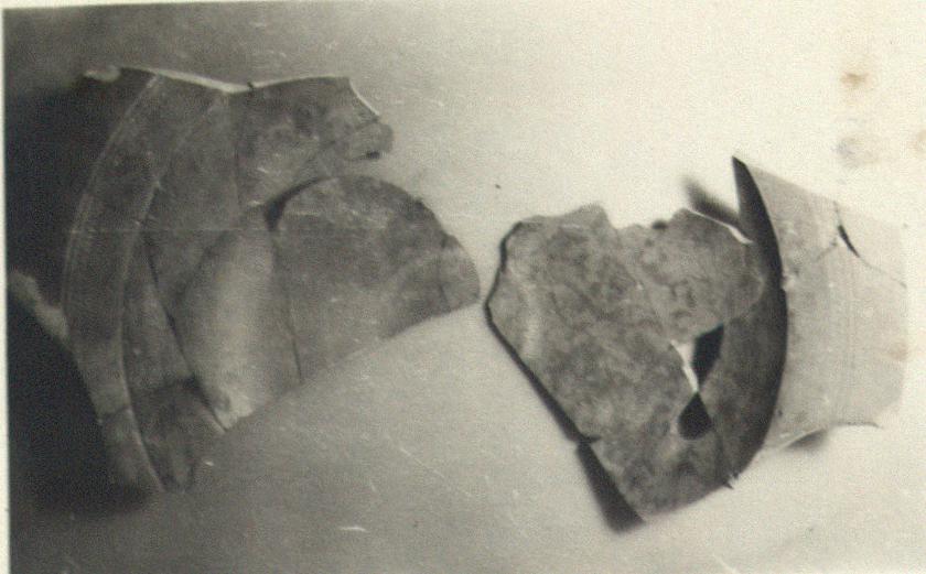 | Description: | Two large fragments, put together from many small ones, of a shallow bowl with nearly flat rim. Restored in plaster. On the rim a deeply incised groove and a narrow band of rouletting; inside, in the center, a small rouletted circle. Very low stepped base. Fine pinkish-orange clay, good red glaze, inside and out, glossy except where worn away. Africa Red Ware. Cf. Agora XXXII, no. 974 (P 3001 + P 26547). | |