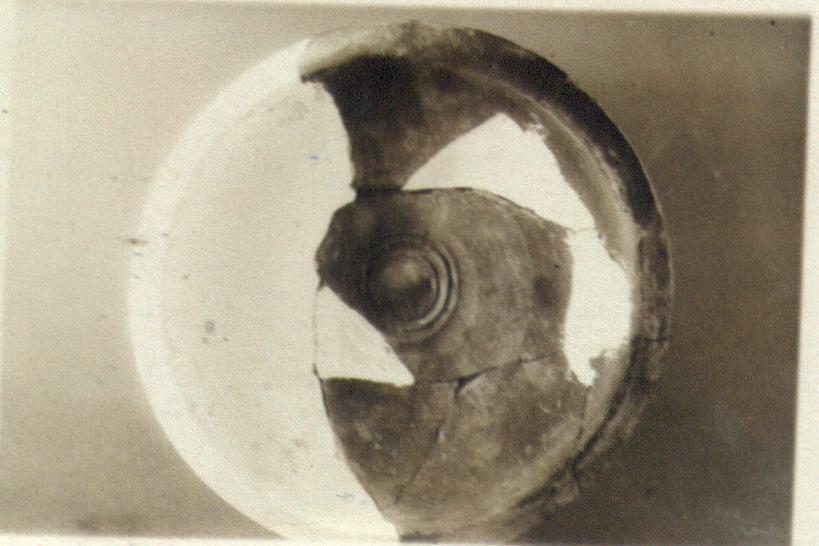 | Description: | Low foot; inside in center two deeply and carefully incised concentric grooves. Outside of walls has broad rounded horizontal ribbings. Restored in plaster. Red micaceous clay; red matte paint inside and part way down outside. Careless fabric. Rim profile and ribbings strongly reminiscent of big "buckets" of this period, such as P 2422 and P 3109. Late Roman D Ware. | |