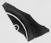 | Description: | Fragment of tondo of red figured cup. Part of a tendril. Above tendril, leaf in added color. In field behind, a painted E. Good black glaze inside, peeling somewhat outside. Attic. Cf. P 32422 from well J 2:4. ADDENDA The fragment P 31009 should be restored to a tondo with an owl between two reserved tendrils and with added white leaves above the tendrils. P 32422 has an inscription: ΕΛΟΧΟΣΕΝ and the initial Ε is in the same position as the Ε on P 31009. Therefore, P 31009 probably bore the same inscription as well. KML 1/99. | |
