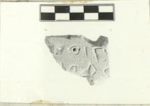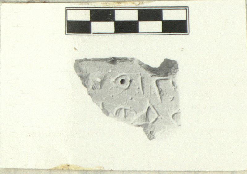 | Description: | Broken all around. Fragment of black glazed vessel with graffito: <graphic> Attic clay. | |