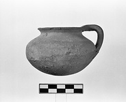 Chytridion, unglazed. Small round body with round bottom, vertical handle, out-turned rim.