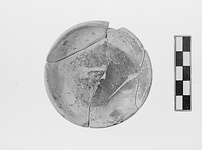 | Description: | Mended from four pieces; complete profile preserved; part of rim missing. Miniature saucer of pyre type. Thin glaze all over. Cf. Agora XII, no. 1576. | |