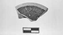 | Description: | Foot of type C cup, cf. Agora XII, no. 420, fig. 4 (500-480 B.C.). Name scratched on the top of the foot fragment: <graphic> | |