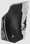 | Description: | Fragment comes from edge of figured medallion; on the left side, a little of the maeander border is preserved. Of the figure, only the arm, draped to the elbow, the hand holding an oinochoe so that the trefoil opening is displayed. On the back of the fragment, part of ornamental pattern: palmette and volute motif outside double reserved band. Attic clay; good black glaze, worn slightly gray in the field but retaining its color next to the figure where it is reinforced by the reserving band. | |