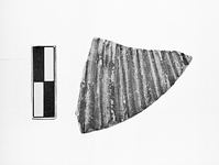 | Description: | Single wall fragment, broken all around. Six convex long petals preserved. Dark red glaze on outside, black on inside. Attic clay. (Probably another fragment of P 20204; from the same context.) | |