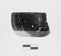 | Description: | Flat underside; rim drawn in slightly towards the base. Echinus wall. Reserved: underside and lower part of wall. Dull black glaze; fabric misfired gray in places. Cf. Agora XII, no. 909. | |