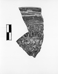 | Description: | Fragment of rim and upper wall. Globular drips on wall below rim. Slightly flaring rim with ridge, plain band and two ridges. Glaze fired red on outside; red to dark brown on inside. | |
